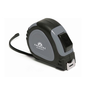 25' pull and tape locks automatically. Push-button retraction and comfortable rubberized finish. Wrist strap and belt clip built-in. Tape is 1" scale with 1/16" increments.
