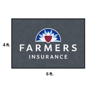 4ft tall by 6ft wide heavy duty floor mat. Plush carpet printed with the full color Farmers logo in High Definition on gray background. Treated with Stain Guard. Rubber backing that keeps mat long lasting. Easy to clean (vacuum or steam clean).