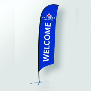 Double sided sail flag with Farmers logo WELCOME below the logo. Carbon composite frame. Stronger and more flexible than traditional aluminum frames. Frames will carry a 1-year warranty. Flag banners are made of a 110g polyester and polyester pongee for double sided printing. Print method is dye sublimation, so it won't fade in sunlight. Prices includes: Fiberglass Frame, Banner, Cross Base, Water Ballast and Carry Case. Assembled height is 11.5ft.