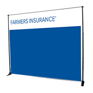 10-foot expanding display with FARMERS INSURANCE branded at the top. Includes hardware, graphic and carrying case. Please allow 3 weeks for delivery.