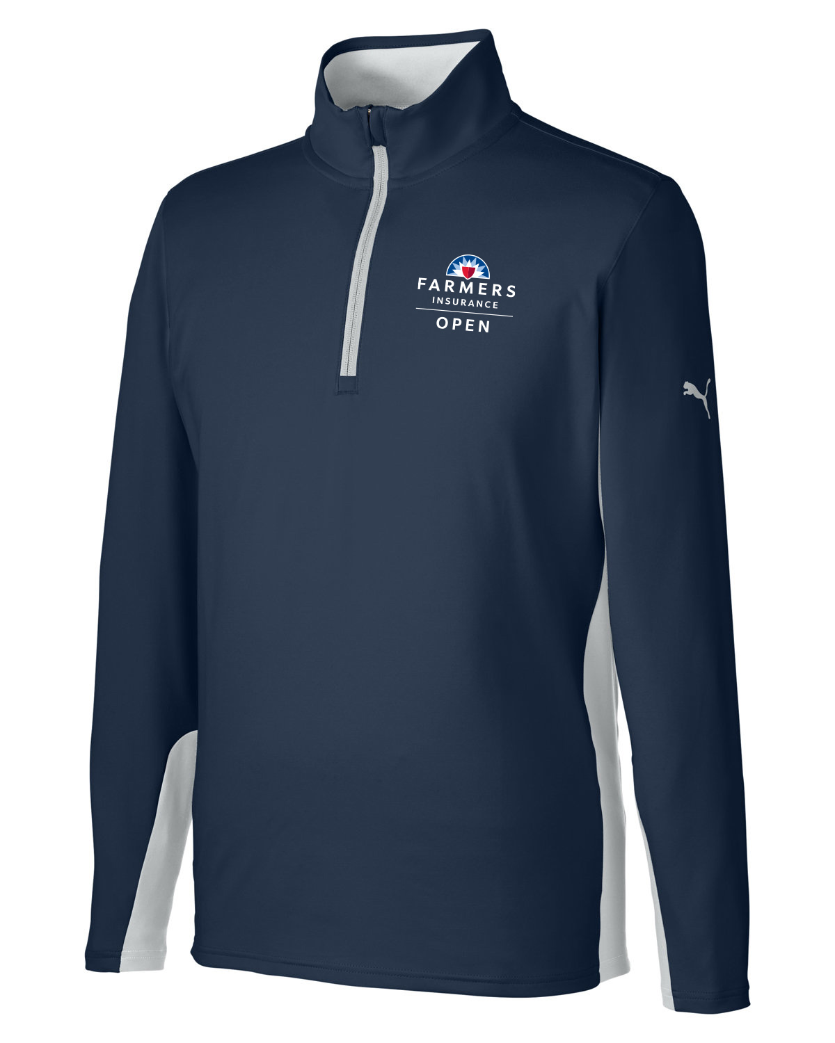 86% polyester, 14% elastane Features: DryCELL moisture-wicking performance, UV resistant UPF, 4-way stretch for ease of movement, Solid base with color-blocking under the arms, Puma Cat logo on left sleeve.