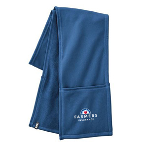 This stretchy knit scarf features built-in hand-warmer pockets. It's made with an anti-pill brushed back knit that has a water repellent finish and handwarmer pockets. The Farmers logo is embroidered on the pocket.