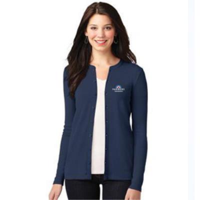 Ladies' Navy Blue Stretch Botton-Front Cardigan