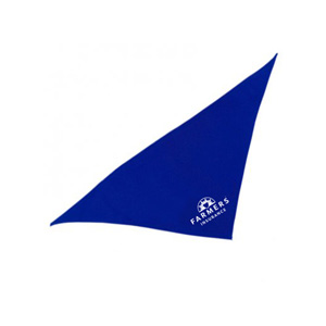 100% Cotton Royal Blue Triangle Bandana for Smaller Dogs. Great for Outdoor Events and Dog Lovers. Farmers logo is imprinted in white on the corner.