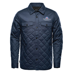 When the temperature unexpectedly dips, this quilted polyfill jacket with a snap closure center front zipper and zippered hand warmer pockets is guaranteed to keep you warm and protected from chills. When the clouds close in, go undercover with the adjustable attached hood. Farmers logo is embroidered on the left chest.
