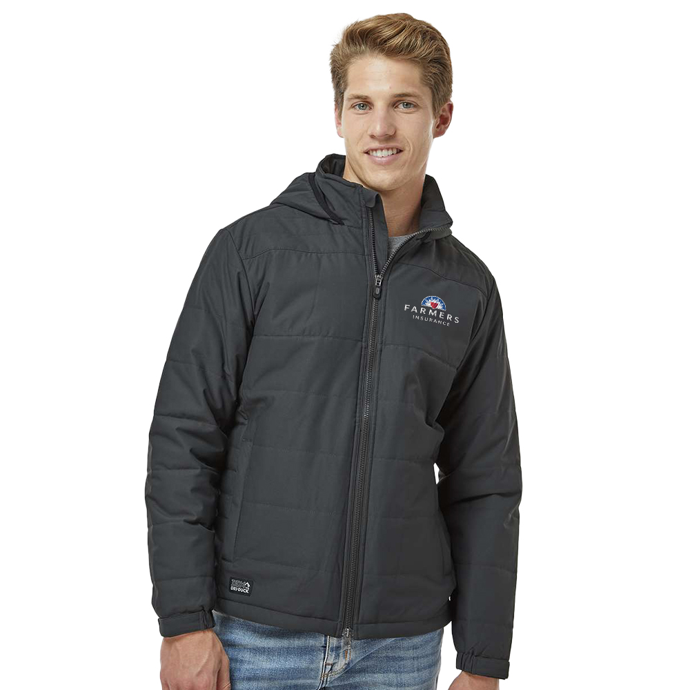 3.8 oz./yd², 100% polyester matte 4-way stretch twill exterior and 1.8 oz./yd², 100% polyester stretch dewspo lining. 3M™ Thinsulate™ premium synthetic insulation, DWR water-resistant finish, Three-piece hood with elastic binding at opening and stand-up collar. Two-way zipper with easy grab pull. Interior zippered chest pocket and exterior zippered hand pockets. Elastic cuffs with adjustable tabs. Adjustable cord lock cinch at hem with 1 1/2" drop tail.