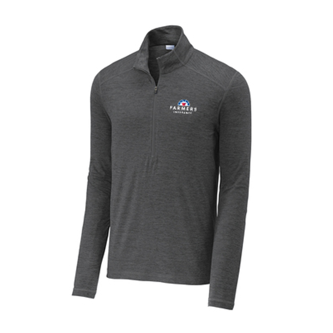 Why did we name this stretchable 1/2-zip the 1.5? Because it's light enough to wear as a tee, but warm enough to be a light layer. 5.6-ounce, 88/12 poly/spandex. Reverse coil zipper, coverstitch seams throughout and open cuffs and hem. Farmers logo is embroidered on the left chest.
