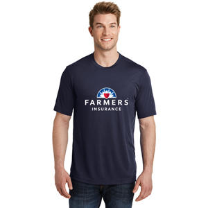 A soft cotton hand merges with color-locking, moisture-wicking performance in this tee that also has a matte finish. 4.7-ounce, 100% spun polyester jersey with PosiCharge technology, Soft cotton hand, Removable tag for comfort, Dyed-to-match neck taping, Set-in sleeves, Full color Farmers logo screen printed on the front.