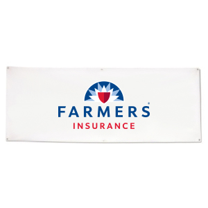 8x3 digitally printed vinyl banner is a great way to advertise/brand your office name at tradeshows and events. It can be used time and time again.Grommets on all 4 corners and every 2 feet in between. 5 total on top and 5 on bottom. Farmers logo printed only.