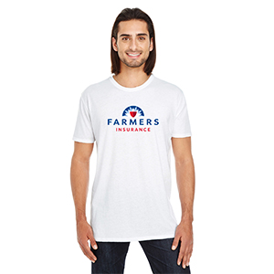 Unisex super soft short sleeve tee. Preshrunk, CVC fabric with soft, smooth finish. Retail fit. 60 % cotton, 40% polyester. Farmers logo printed across chest.